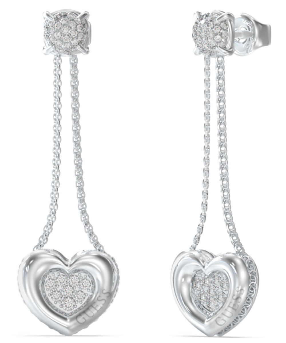 Γυναικεία σκουλαρίκια Guess από ανοξείδωτο ατσάλι σε σχήμα καρδιάς και με λευκές πέτρες Ζιργκόν.
