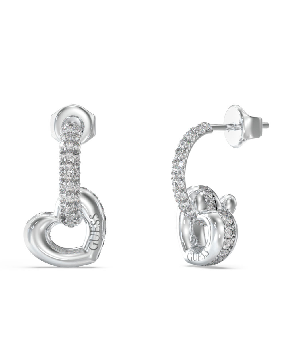 Γυναικεία σκουλαρίκια Guess από ανοξείδωτο ατσάλι σε σχήμα καρδιάς και με λευκές πέτρες Ζιργκόν.