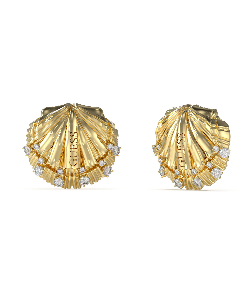 Γυναικεία σκουλαρίκια Guess από επιχρυσωμένο ανοξείδωτο ατσάλι με σχέδιο κοχύλι και με λευκές πέτρες Ζιργκόν.