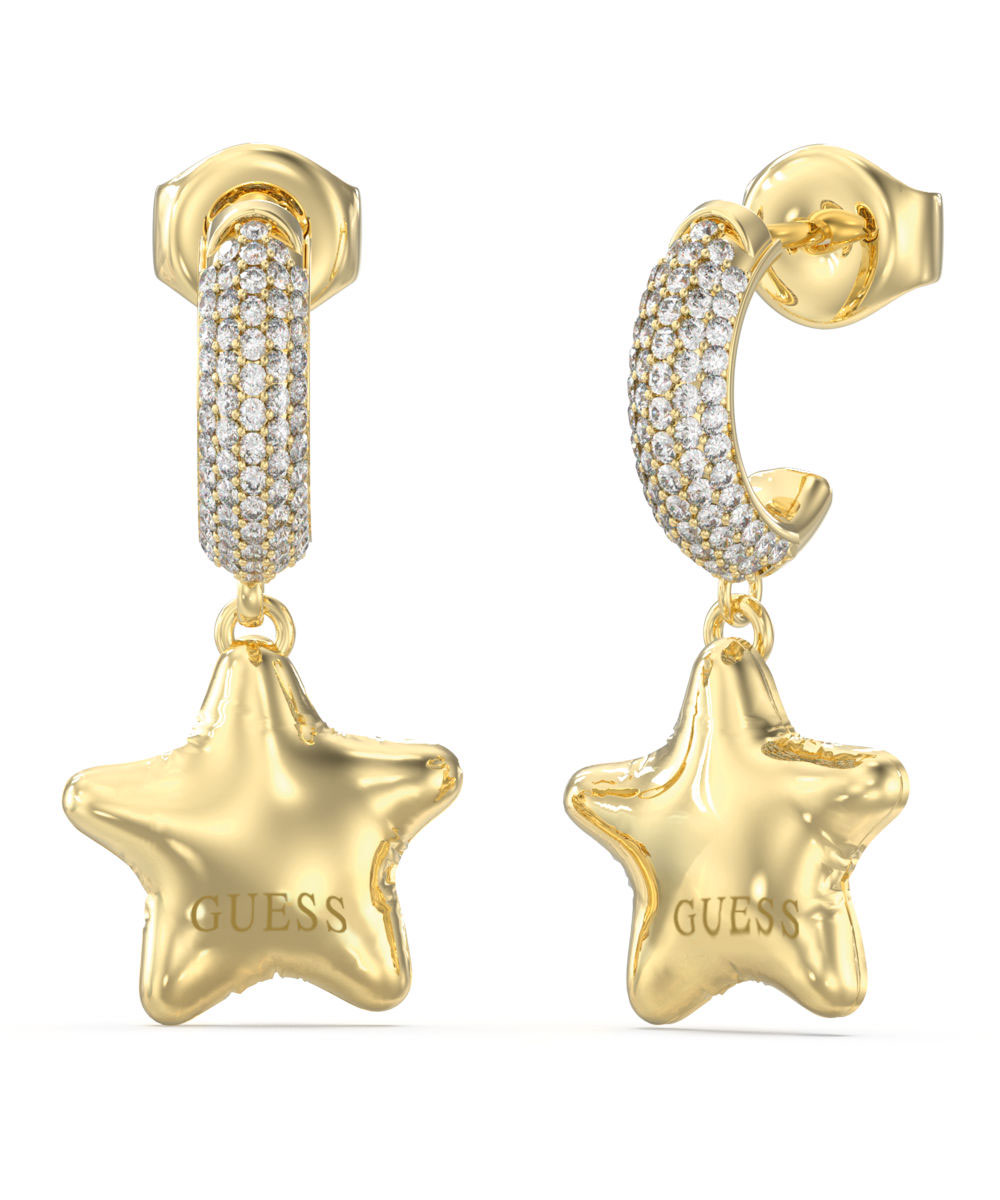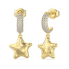 Γυναικεία σκουλαρίκια Guess από επιχρυσωμένο ανοξείδωτο ατσάλι σε σχήμα αστέρι και με λευκές πέτρες Ζιργκόν.