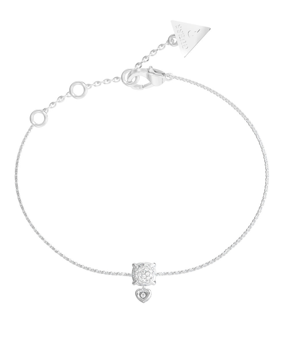 Γυναικείο βραχιόλι Guess από ανοξείδωτο ατσάλι με κρεμαστό μοτίφ και με λευκές πέτρες Ζιργκόν.
