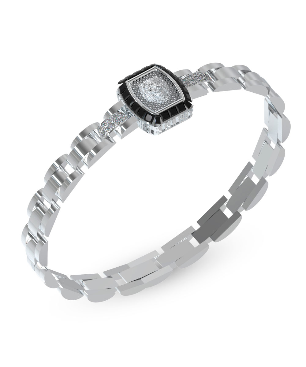 Ανδρικό βραχιόλι Guess από ανοξείδωτο ατσάλι με σχέδιο λιοντάρι και με λευκές και μαύρες πέτρες Ζιργκόν.