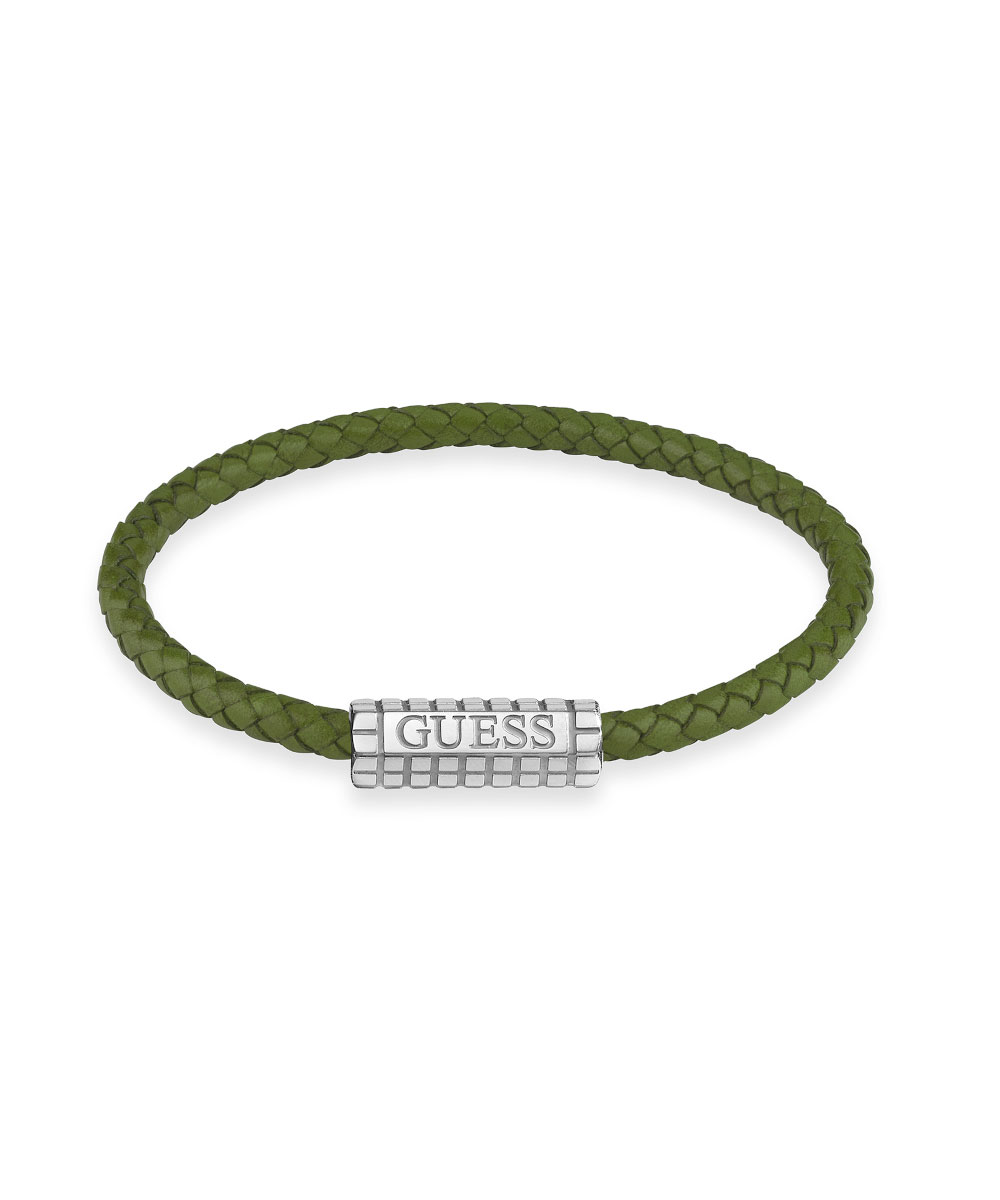 Ανδρικό βραχιόλι Guess από ανοξείδωτο ατσάλι με πράσινο δέρμα.