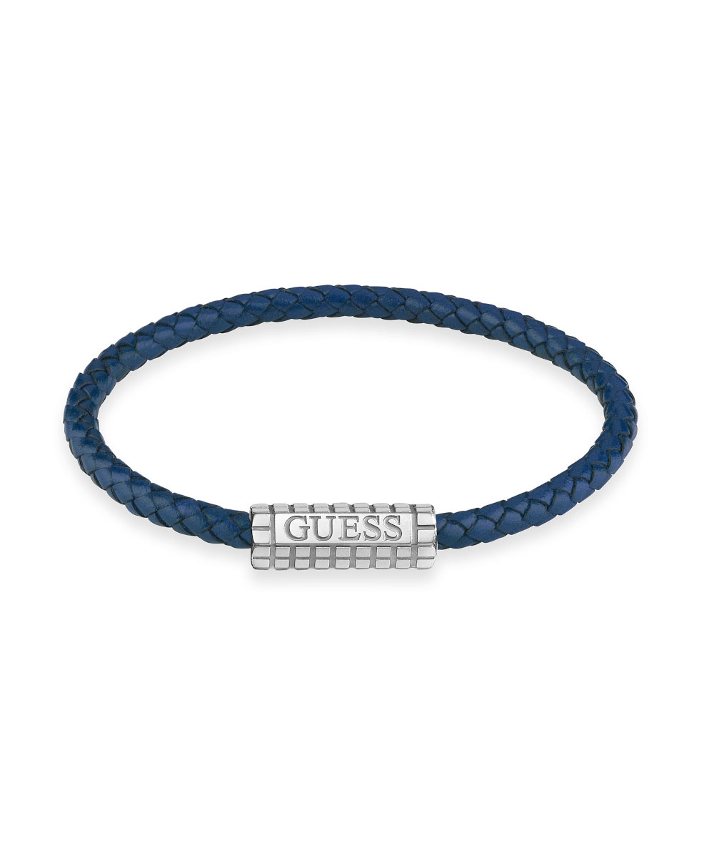 Ανδρικό βραχιόλι Guess από ανοξείδωτο ατσάλι με μπλε δέρμα.