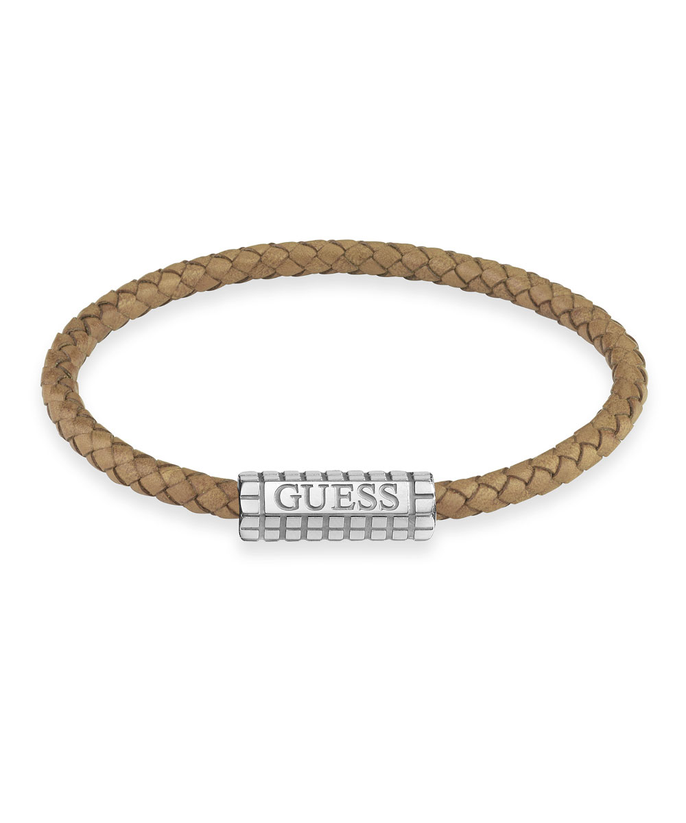Ανδρικό βραχιόλι Guess από ανοξείδωτο ατσάλι με καφέ δέρμα.