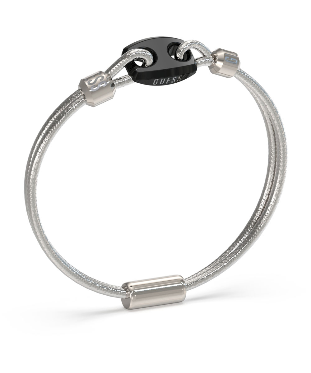 Ανδρικό βραχιόλι Guess από ανοξείδωτο ατσάλι με ασημί δέρμα.