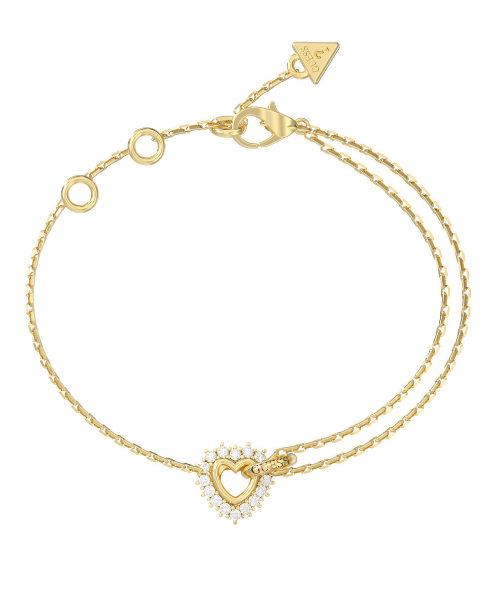 Γυναικείο βραχιόλι Guess από επιχρυσωμένο ανοξείδωτο ατσάλι με σχέδιο καρδιά και με λευκές πέτρες Ζιργκόν.