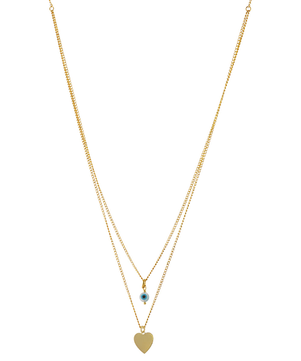 Γυναικείο κολιέ Loisir από επιχρυσωμένο ασήμι 925 με κρεμαστά μοτίφ, ματάκι και καρδούλα.