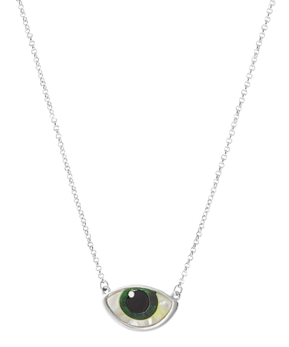 Γυναικείο κολιέ Loisir από επιπλατινωμένο ορείχαλκο με κρεμαστό μοτίφ σε σχήμα μάτι με σμάλτο.