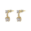 Κομψά κρεμαστά σκουλαρίκια από επιχρυσωμένο ορείχαλκο με δύο λευκές πέτρες Ζιργκόν που χαρίζουν μοναδική λάμψη. Ιδανικά για elegant εμφανίσεις, γάμους, βαφτίσεις ή ιδιαίτερες περιστάσεις. Ένα διαχρονικό και φωτεινό σχέδιο που ταιριάζει σε κάθε στυλ.
