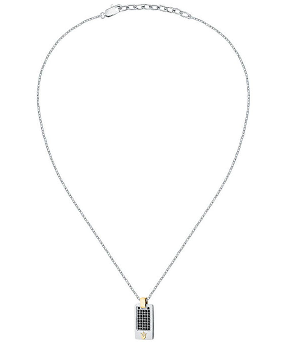 Ανδρικό κολιέ Maserati από ανοξείδωτο ατσάλι με μαύρες πέτρες Ζιργκόν.