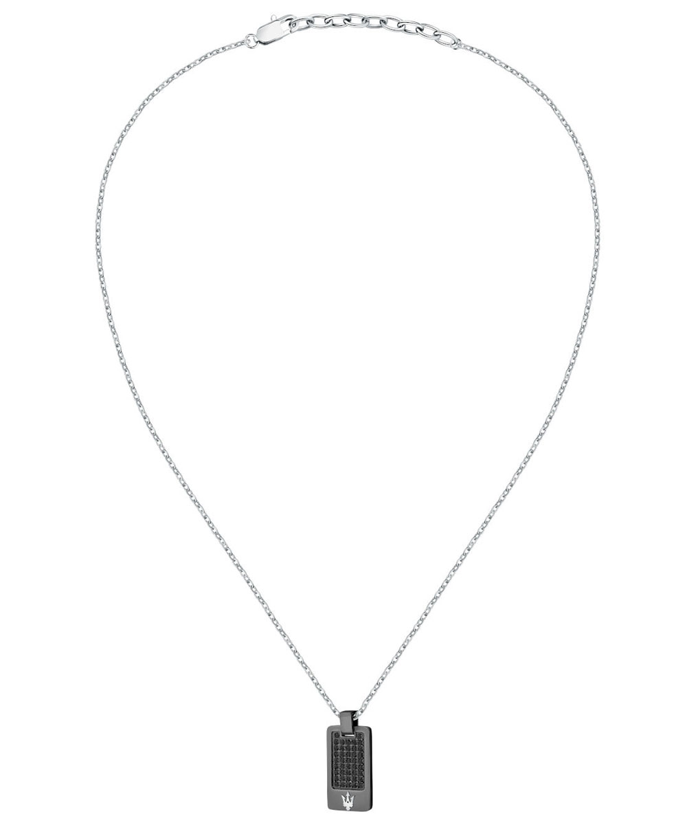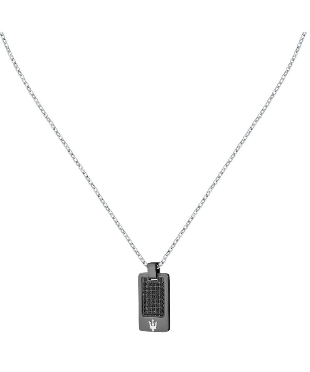 Ανδρικό κολιέ Maserati από ανοξείδωτο ατσάλι με μαύρες πέτρες Ζιργκόν.