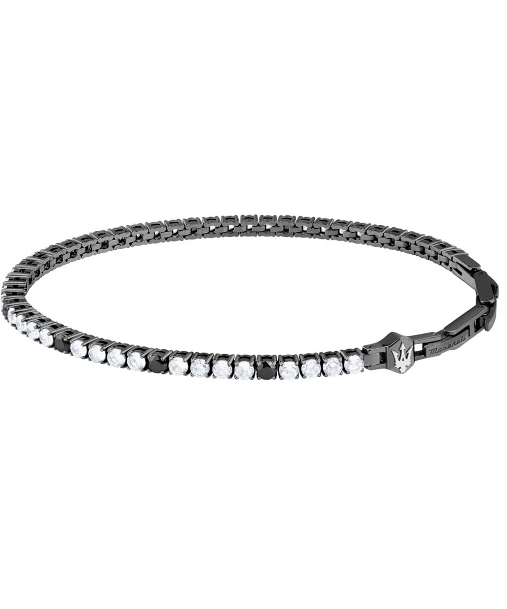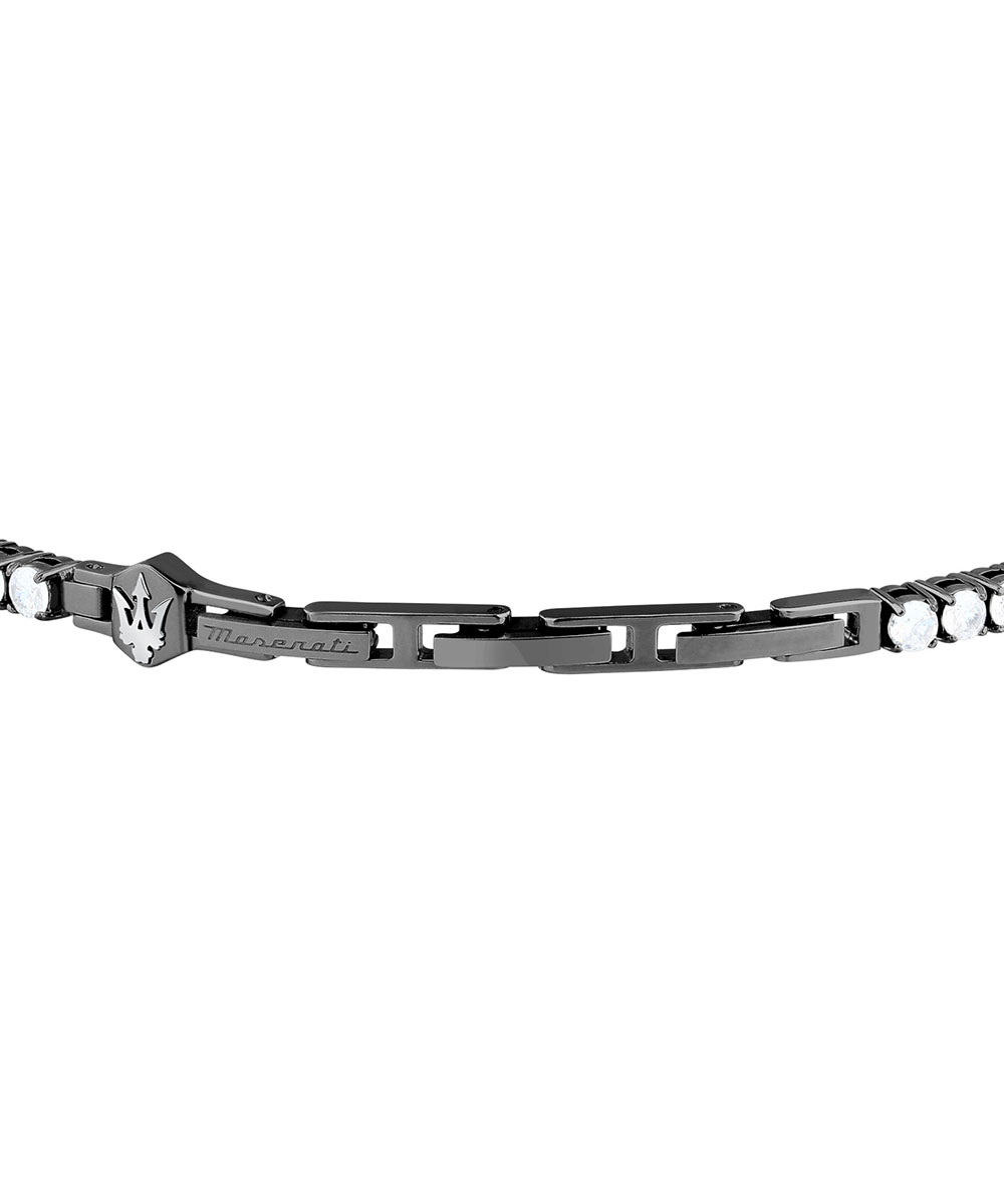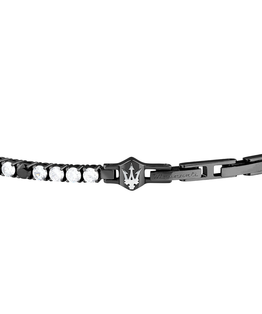 Ανδρικό βραχιόλι Maserati από μαύρο ανοξείδωτο ατσάλι με λευκές πέτρες Ζιργκόν.