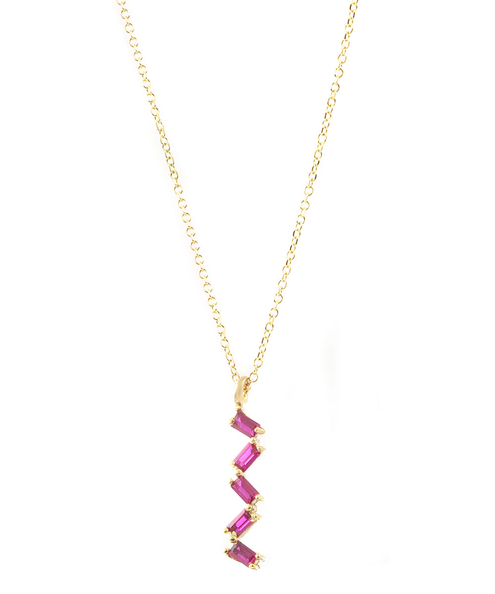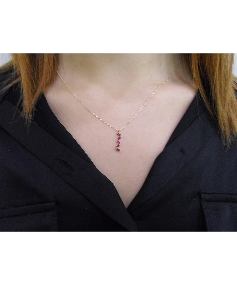 Μοντέρνο χρυσό κολιέ 14 καράτια με ρουμπίνια τοποθετημένα σε εντυπωσιακό ζιγκ ζαγκ σχέδιο. Ένα ιδιαίτερο κόσμημα που προσθέτει δυναμισμό και χρώμα σε κάθε εμφάνιση.
