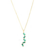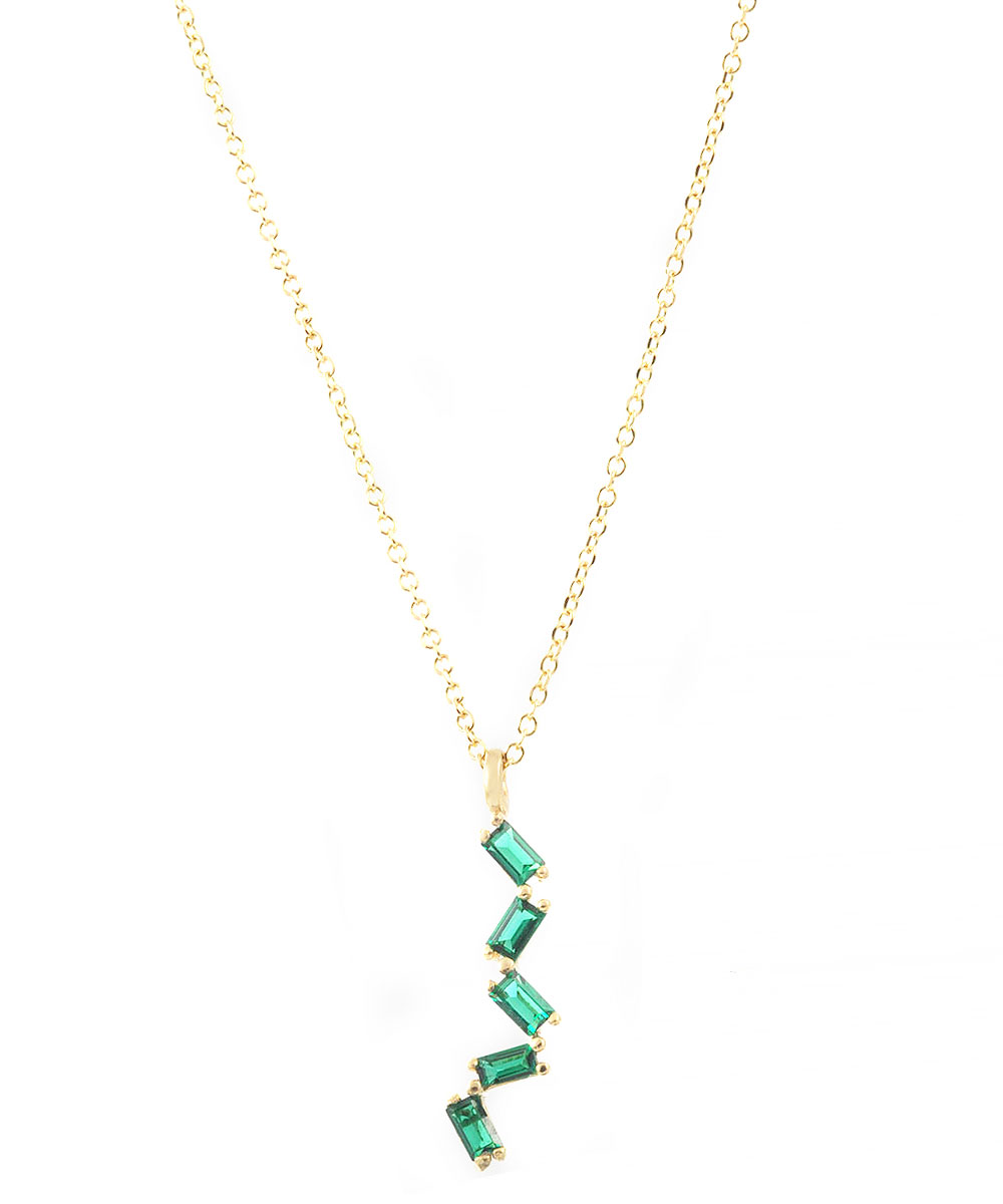Λεπτεπίλεπτο χρυσό κολιέ 14 καράτια με σμαράγδια σε ζιγκ ζαγκ διάταξη, που χαρίζει φρεσκάδα και κομψότητα. Ένα μοντέρνο κόσμημα για καθημερινή αλλά και βραδινή χρήση.