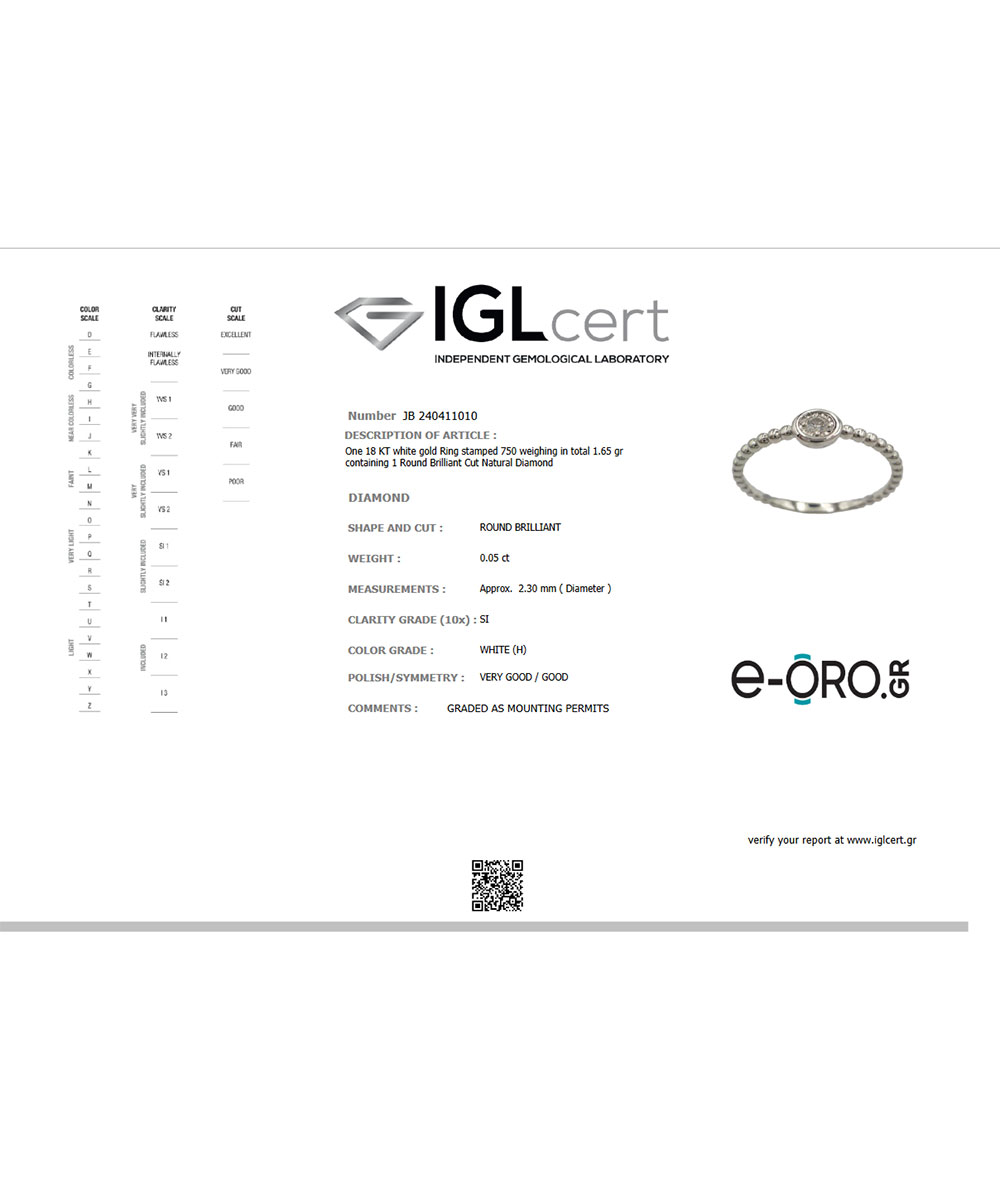 Γυναικείο μονόπετρο δαχτυλίδι Metrongold από λευκόχρυσο 18 Καράτια με Διαμάντι σε κοπή Μπριγιάν(Br).