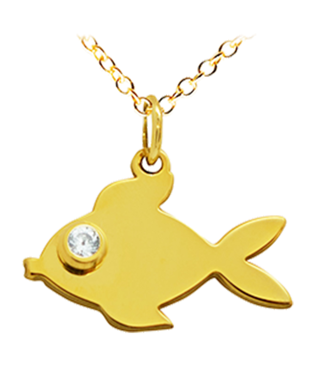 Γυναικείο Μενταγιόν Personal Jewel Χρυσό 14 καράτια με σχέδιο ψάρι και με πέτρα Ζιργκόν.