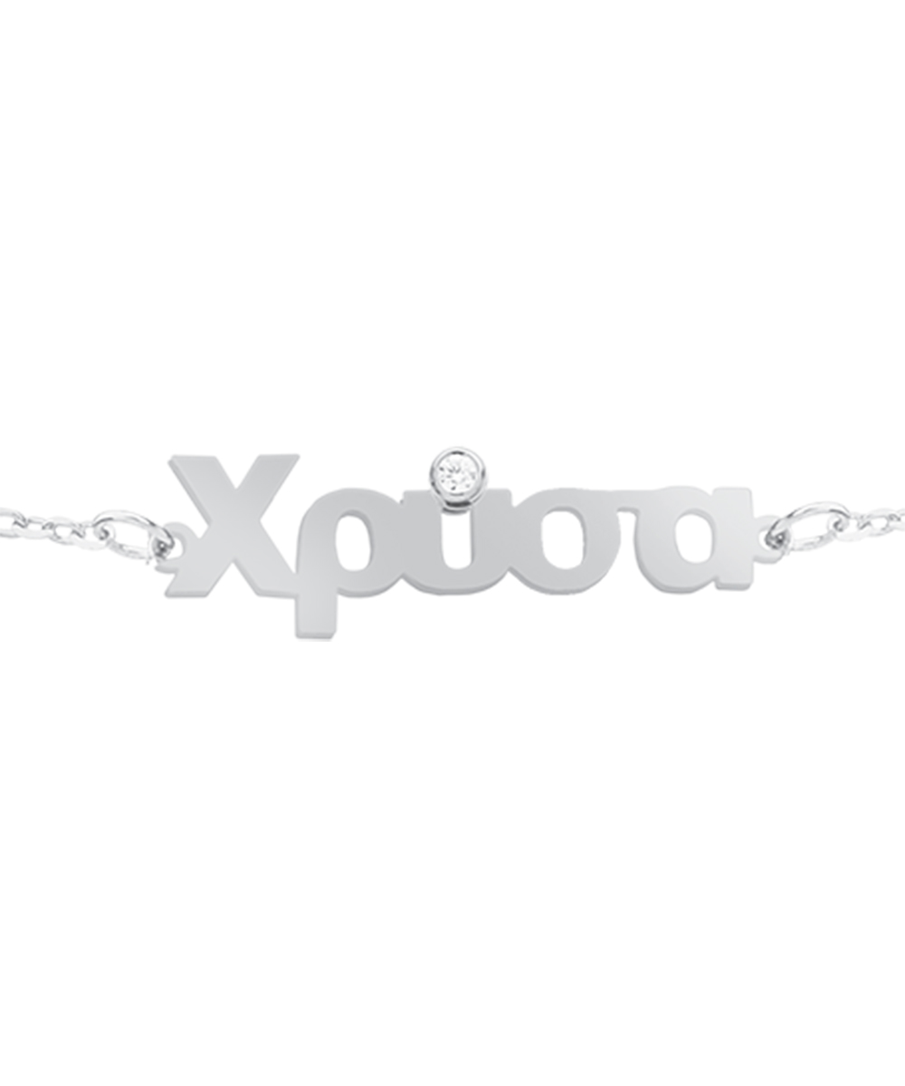 Γυναικείο Βραχιόλι Personal Jewel Λευκόχρυσο 14 καράτια με σχέδιο οριζόντιο όνομα και με πέτρα Ζιργκόν.