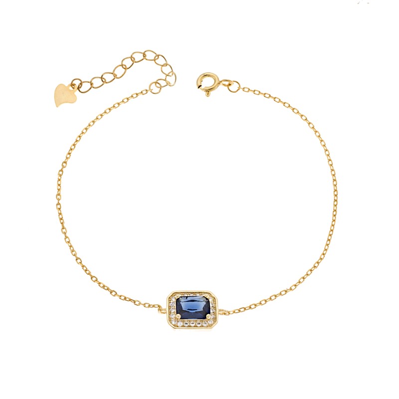Βραχιόλι Senza επιχρυσωμένο ασήμι 925, παραλληλόγραμμο με μπλε πέτρα και λευκά ζιργκόν