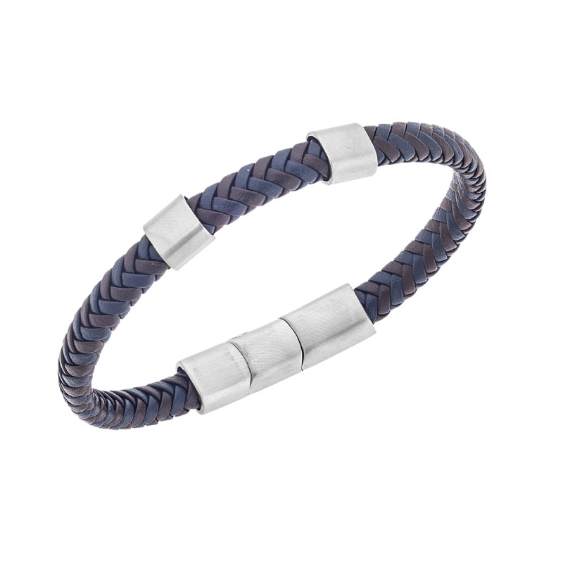Βραχιόλι Senza Steel Blue & Brown Leather Strap