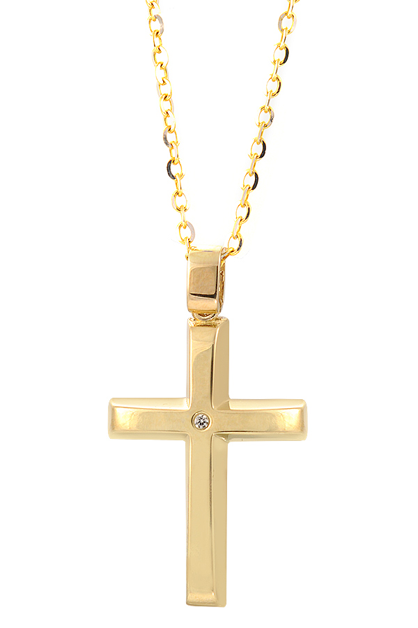 Σταυρός Val'Oro Χρυσός 14 καράτια με πέτρα Ζιργκόν. Συνοδεύεται από αλυσίδα χρυσή 14 καράτια.
