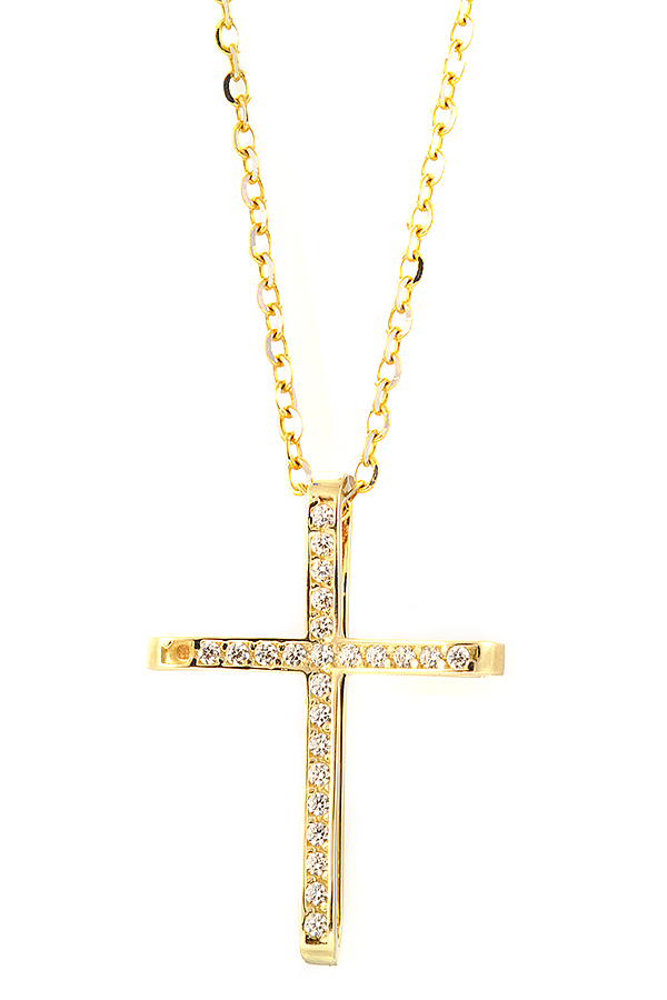 Σταυρός Val'Oro Χρυσός 14 καράτια με πέτρες Ζιργκόν. Συνοδεύεται από αλυσίδα χρυσή 14 καράτια.