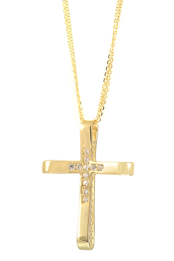 Σταυρός Val'Oro Χρυσός 14 καράτια με πέτρα Ζιργκόν. Συνοδεύεται από αλυσίδα χρυσή 14 καράτια.