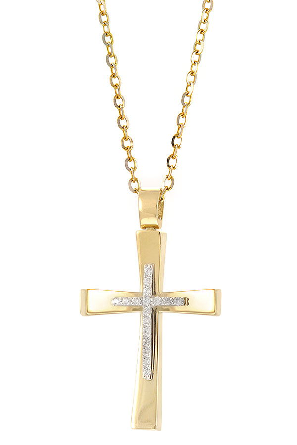 Σταυρός Val'Oro Χρυσός 14 καράτια με πέτρες Ζιργκόν. Συνοδεύεται από αλυσίδα χρυσή 14 καράτια.