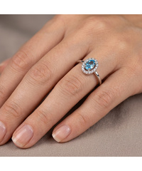 Δαχτυλίδι Λευκόχρυσο 9 καράτια με μπλε και λευκά Ζιργκόν ...