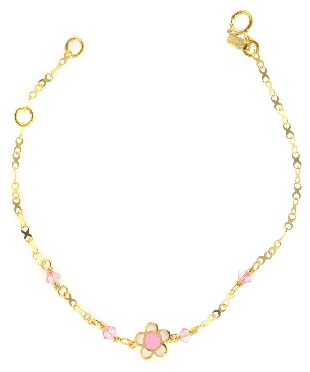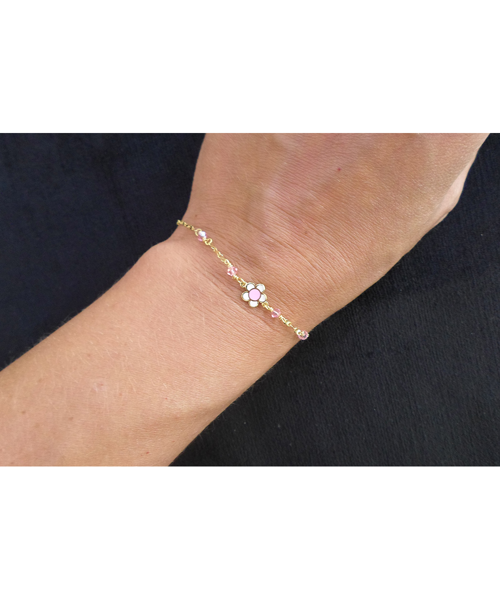 Παιδικό βραχιόλι χρυσό 14 καράτια με ροζ πέτρες και σμάλτο.