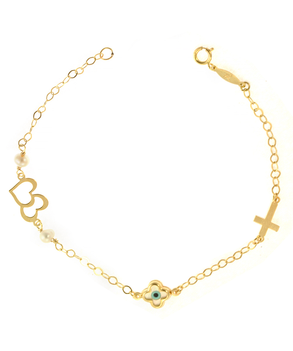 Βραχιόλι Χρυσό 9 καράτια με λευκά Μαργαριτάρια και με ματάκι.