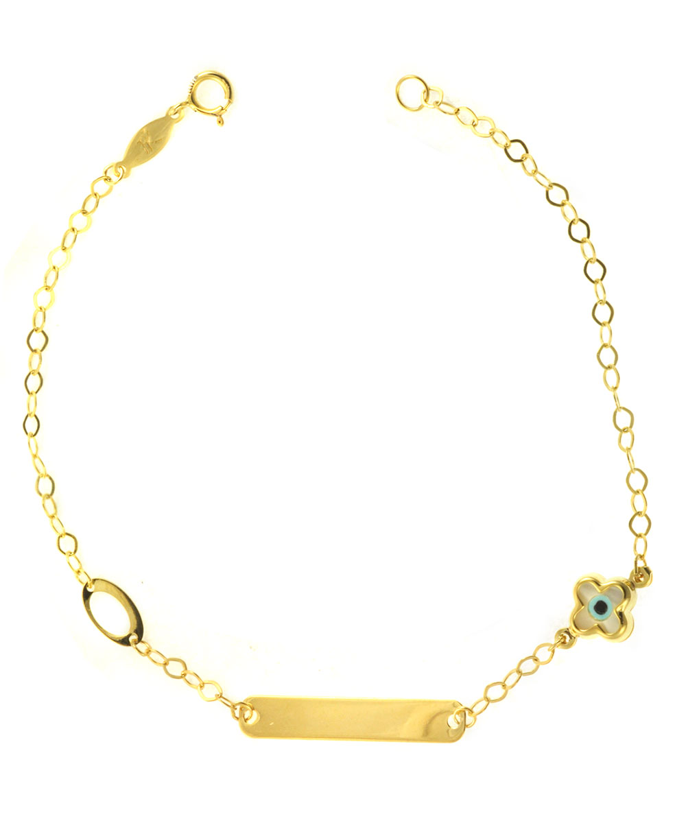 Παιδική ταυτότητα χρυσή 9 καράτια με ματάκι και με λευκό φίλντισι.