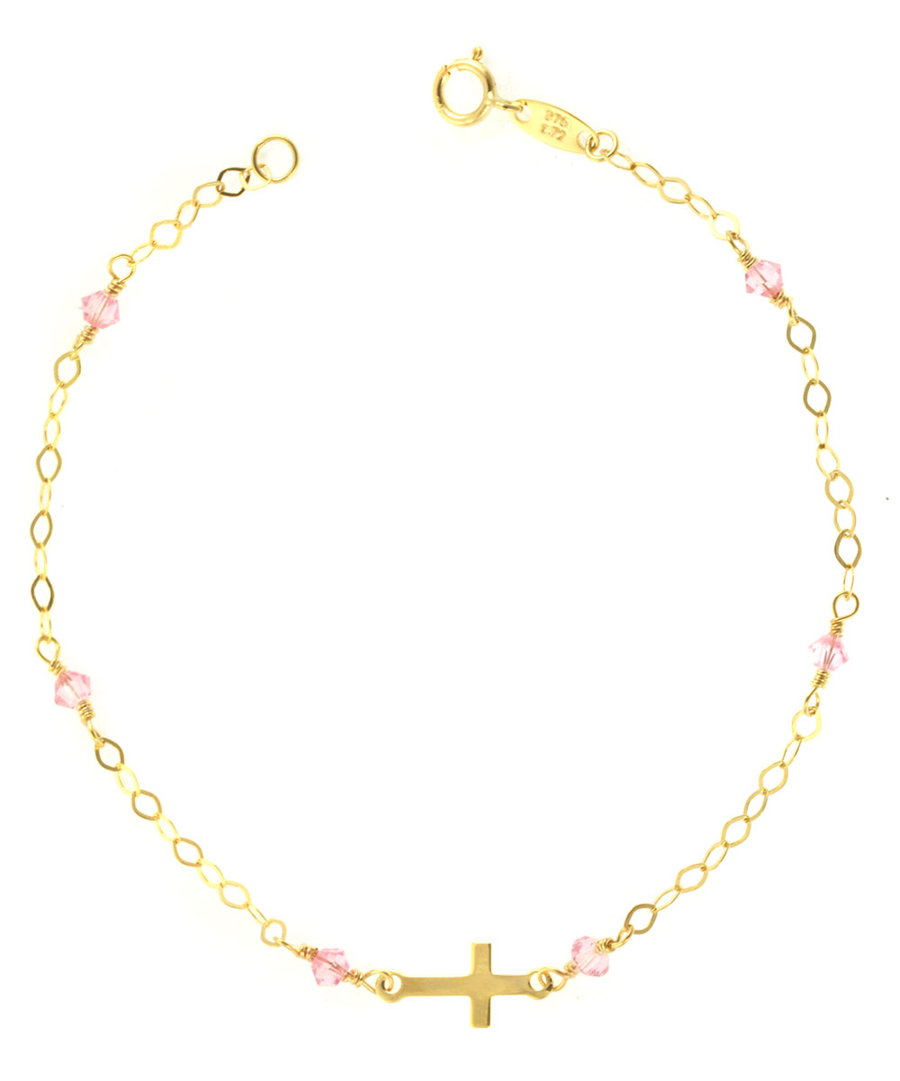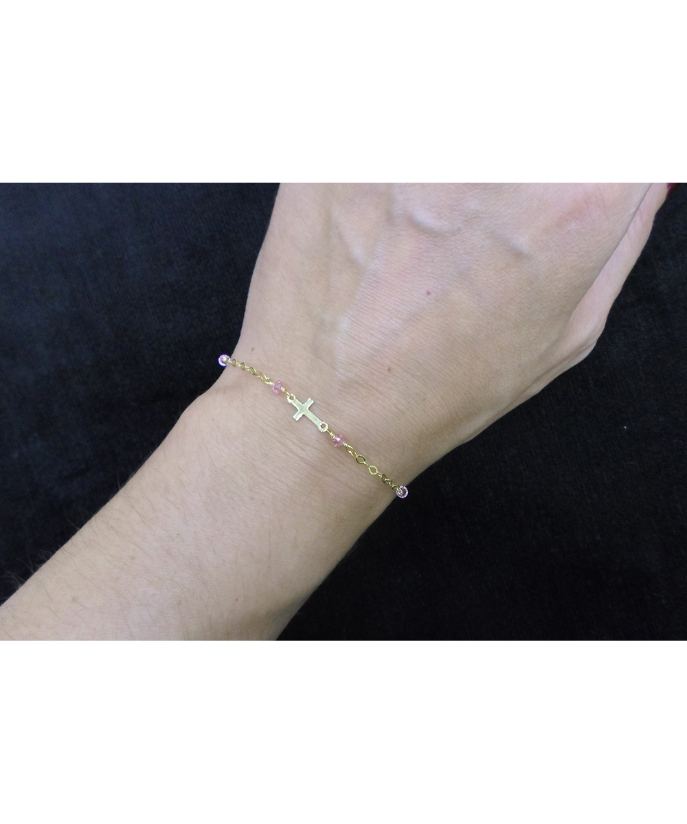 Παιδικό βραχιόλι χρυσό 9 καράτια με ροζ πέτρες.