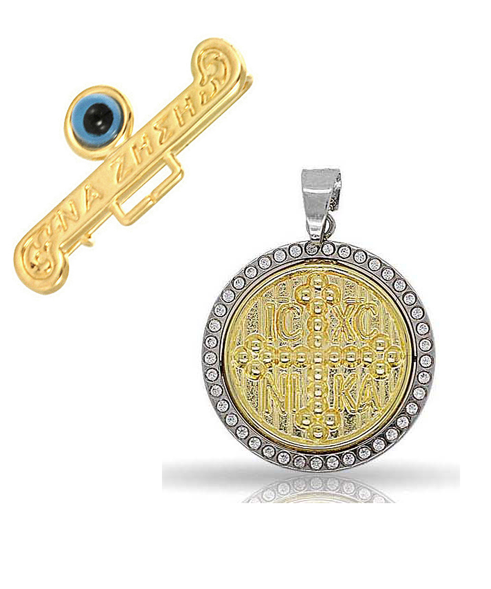 Κωνσταντινάτο Χρυσό 9 Καράτια με πέτρες Ζιργκόν.Συνοδεύεται από καρφίτσα Χρυσή 9 Καράτια.