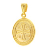 Κομψό οβάλ φυλαχτό από χρυσό 14 καράτια με ανάγλυφο σταυρό IC XC NIKA και λεπτό περίγραμμα. Διαχρονικό κόσμημα πίστης και προστασίας, ιδανικό για καθημερινή χρήση ή δώρο βάπτισης.