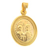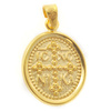 Χρυσό φυλαχτό 14 καράτια σε οβάλ σχέδιο με ανάγλυφο σταυρό IC XC NIKA και περίτεχνο πλαίσιο. Ιδανικό για όσους επιθυμούν ένα διακριτικό και ιερό σύμβολο πίστης και προστασίας.