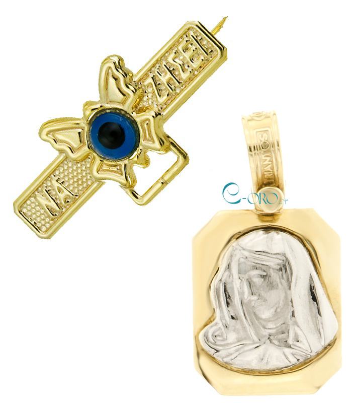 Παναγίτσα Χρυσή 14 Καράτια. Το μενταγιόν συνοδεύεται από καρφίτσα Χρυσή 9 Καράτια.