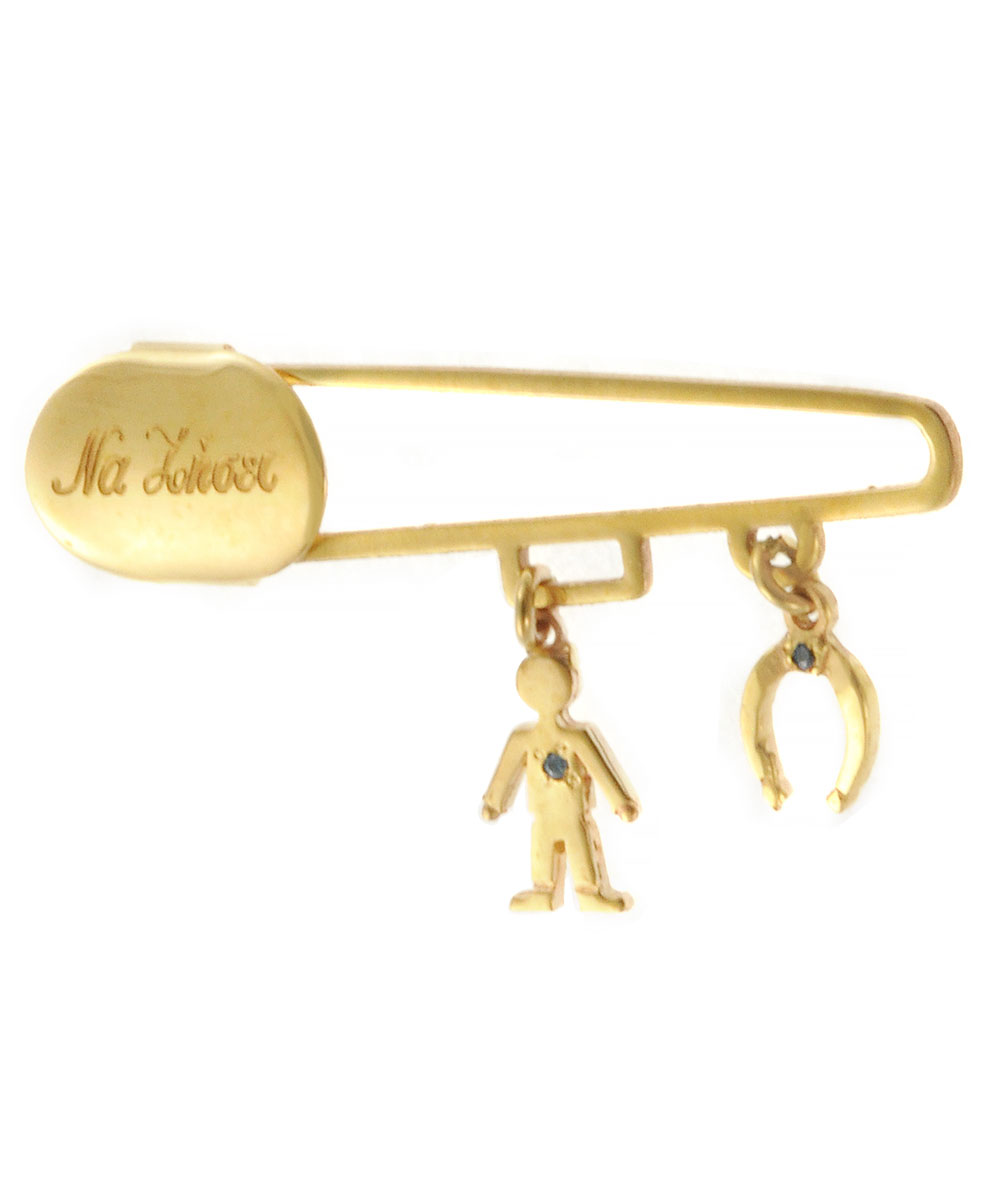 Παιδική παραμάνα χρυσή 9 καράτια με κρεμαστά μοτίφ και με πέτρες Ζιργκόν.