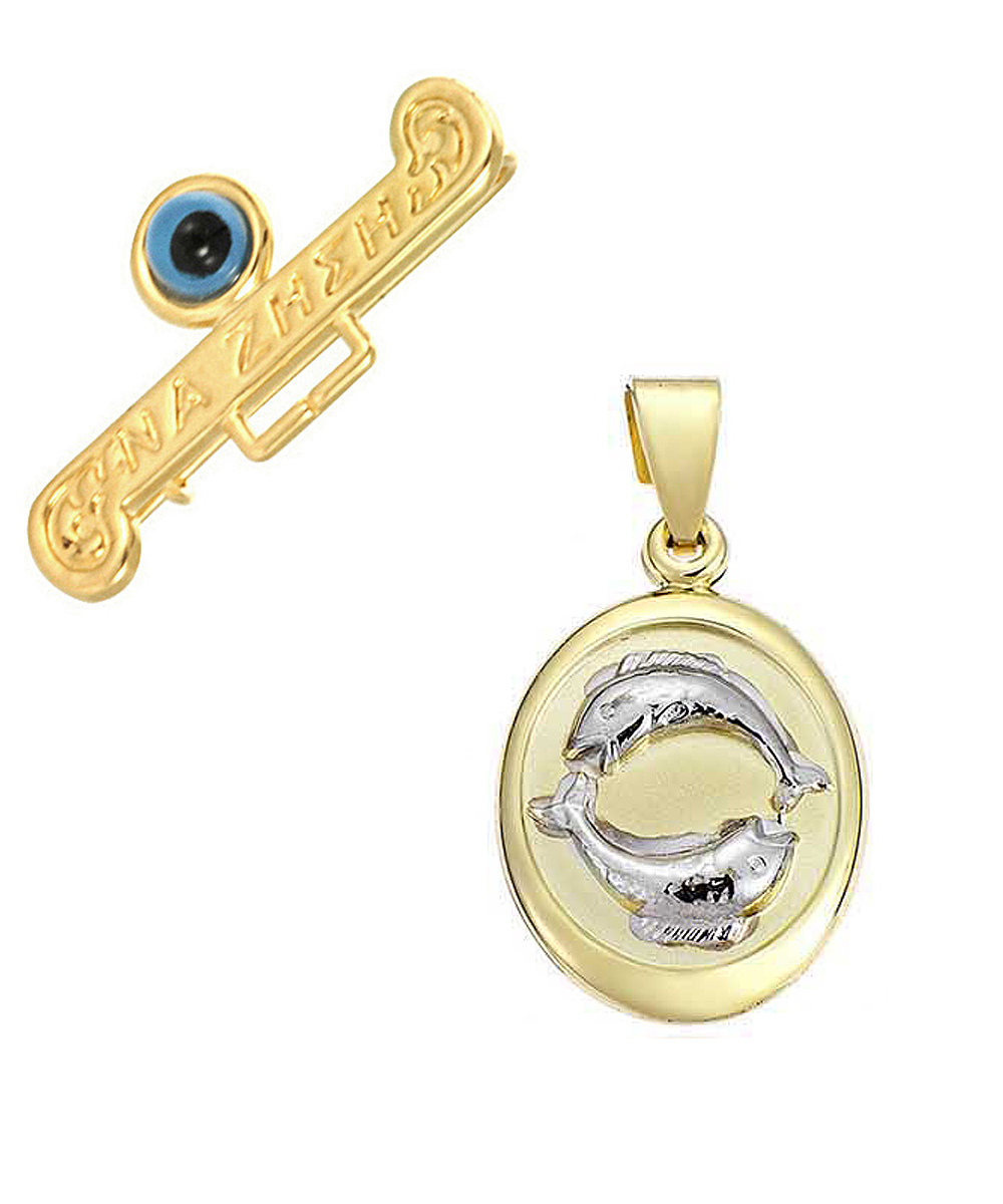 Παιδικό Ζώδιο ''ΙΧΘΕΙΣ'' Χρυσό 9 Καράτια.Συνοδεύεται από καρφίτσα Χρυσή 9 Καράτια.