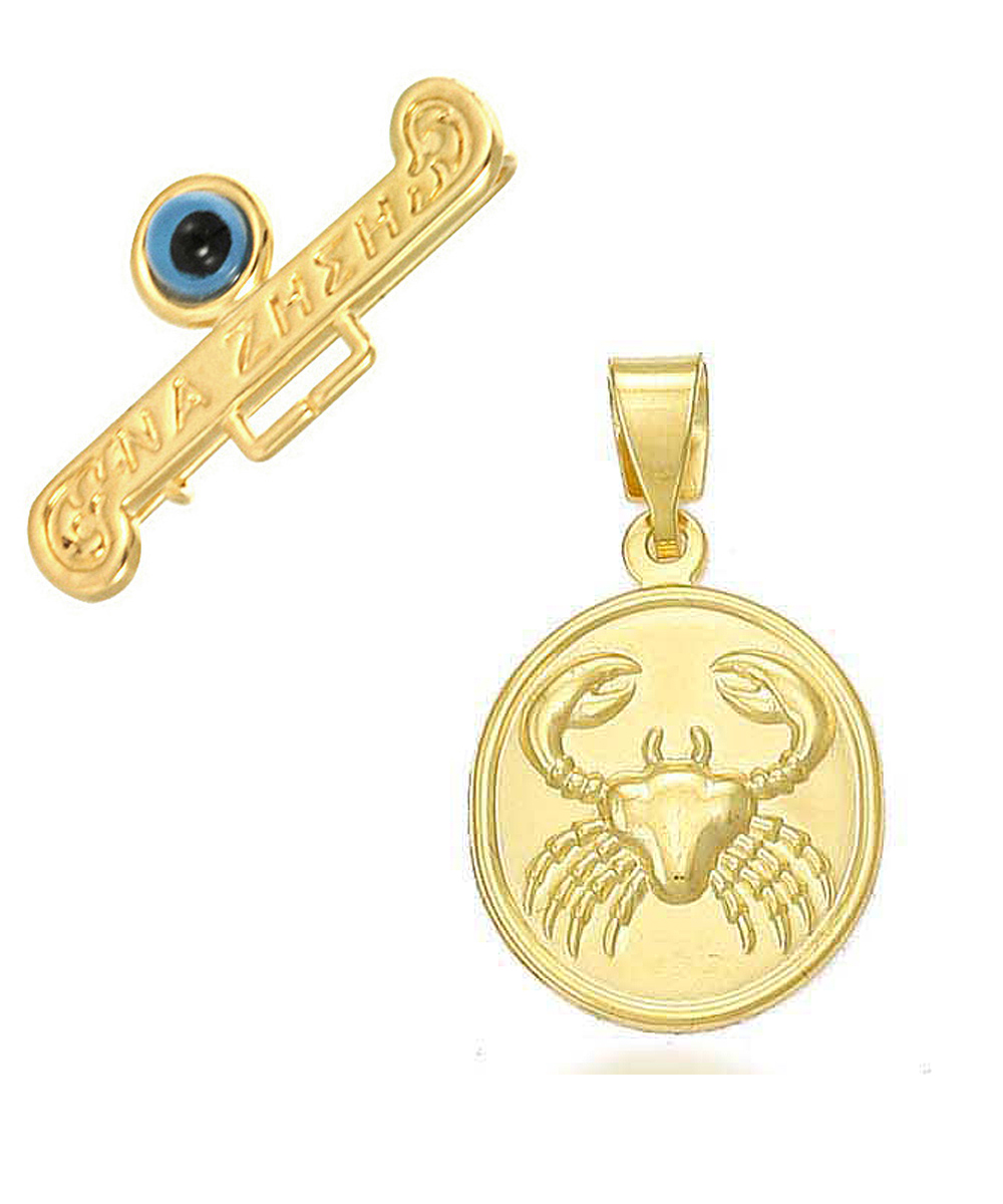 Παιδικό Ζώδιο ''ΚΑΡΚΙΝΟΣ'' Χρυσό 9 Καράτια.Συνοδεύεται από καρφίτσα Χρυσή 9 Καράτια.