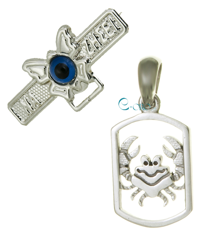 Ζώδιο Λευκόχρυσο 9 Καράτια. Το μενταγιόν συνοδεύεται από καρφίτσα Λευκόχρυση 9 Καράτια.