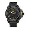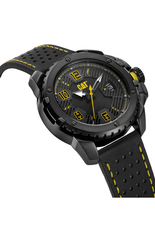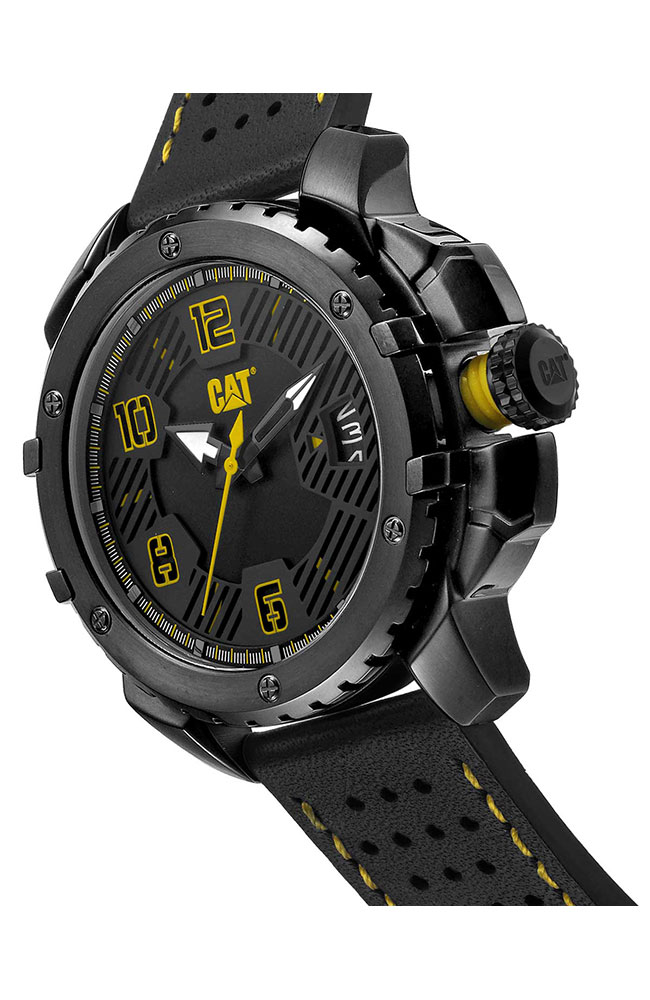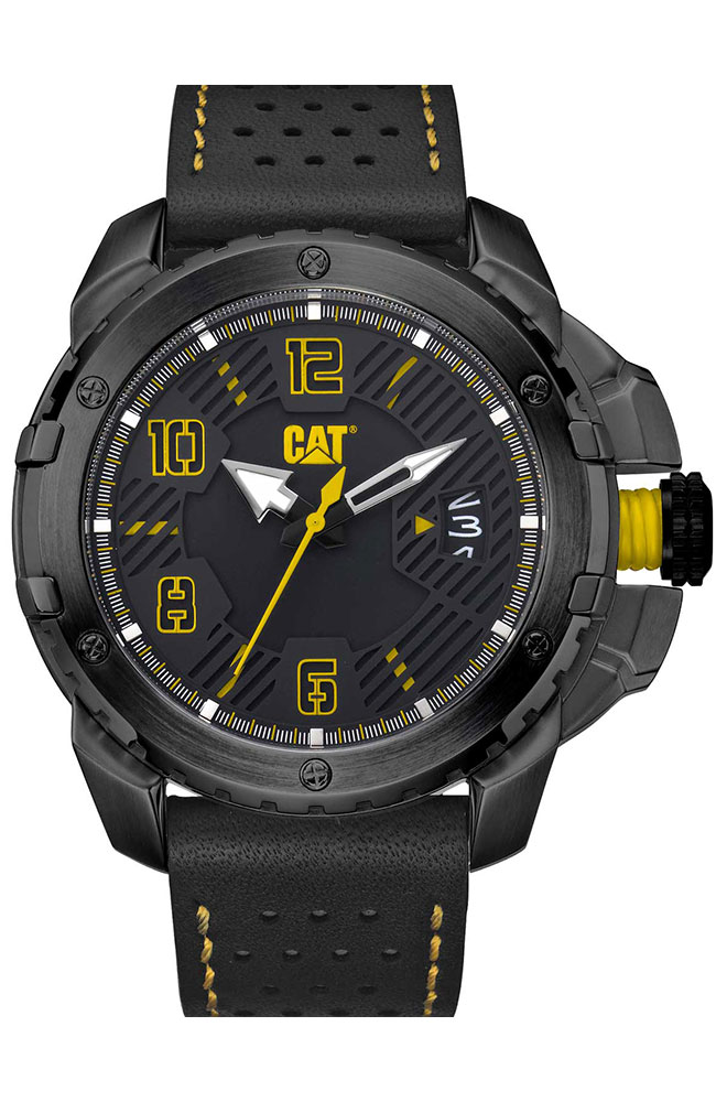 Ανδρικό ρολόι Caterpillar από ανοξείδωτο ατσάλι μαύρο καντράν και μαύρο δερμάτινο λουράκι.