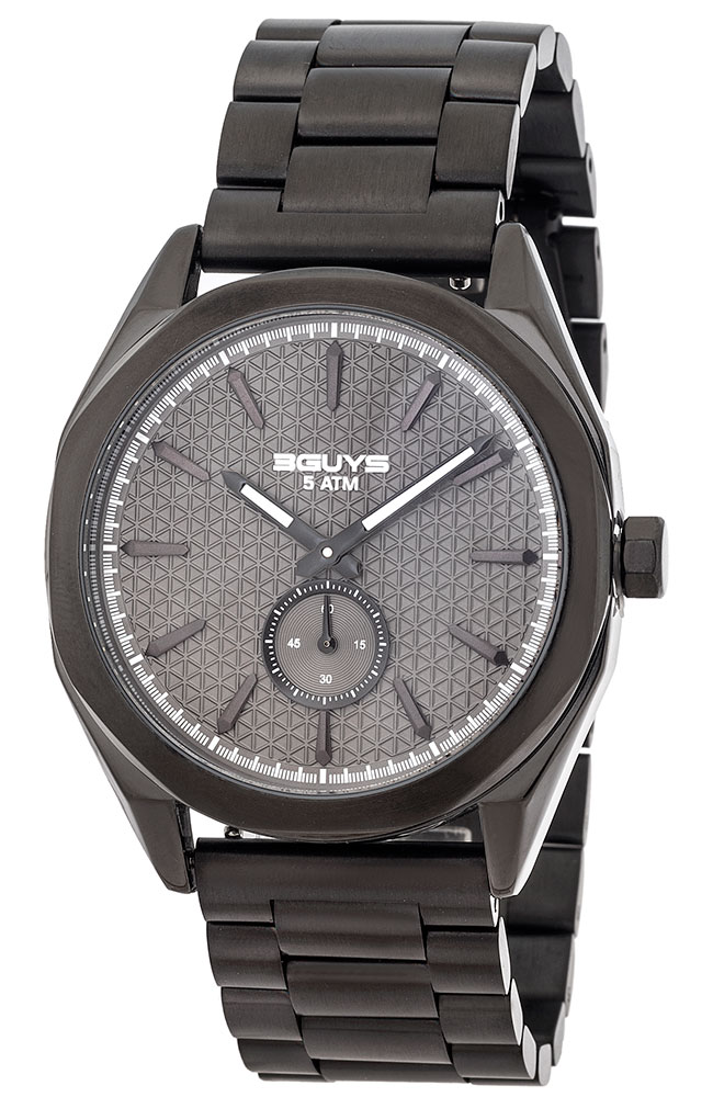 Ανδρικό ρολόι 3Guys με μαύρο καντράν και μαύρο μπρασελέ.