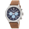 Ανδρικό ρολόι χρονογράφος 3Guys με μπλε καντράν και καφέ δερμάτινο λουράκι.