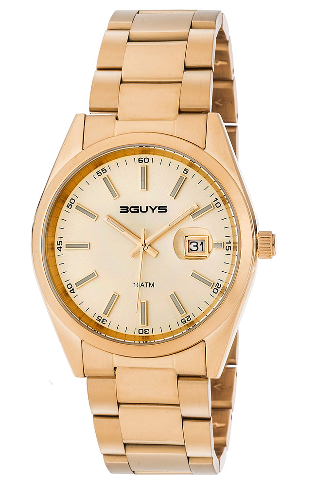 Ανδρικό ρολόι 3Guys από ροζ επιχρυσωμένο ανοξείδωτο ατσάλι με ροζ χρυσό καντράν και ροζ χρυσό μπρασελέ.