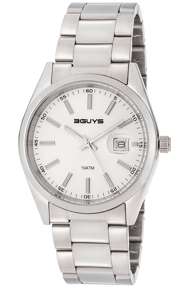 Ανδρικό ρολόι 3Guys από ανοξείδωτο ατσάλι με λευκό καντράν και ασημί μπρασελέ.