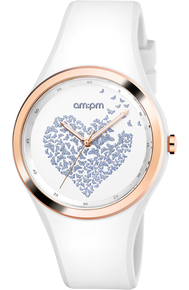 Γυναικείο ρολόι χειρός AM:PM με λευκό καντράν και λευκό καουτσούκ λουράκι.