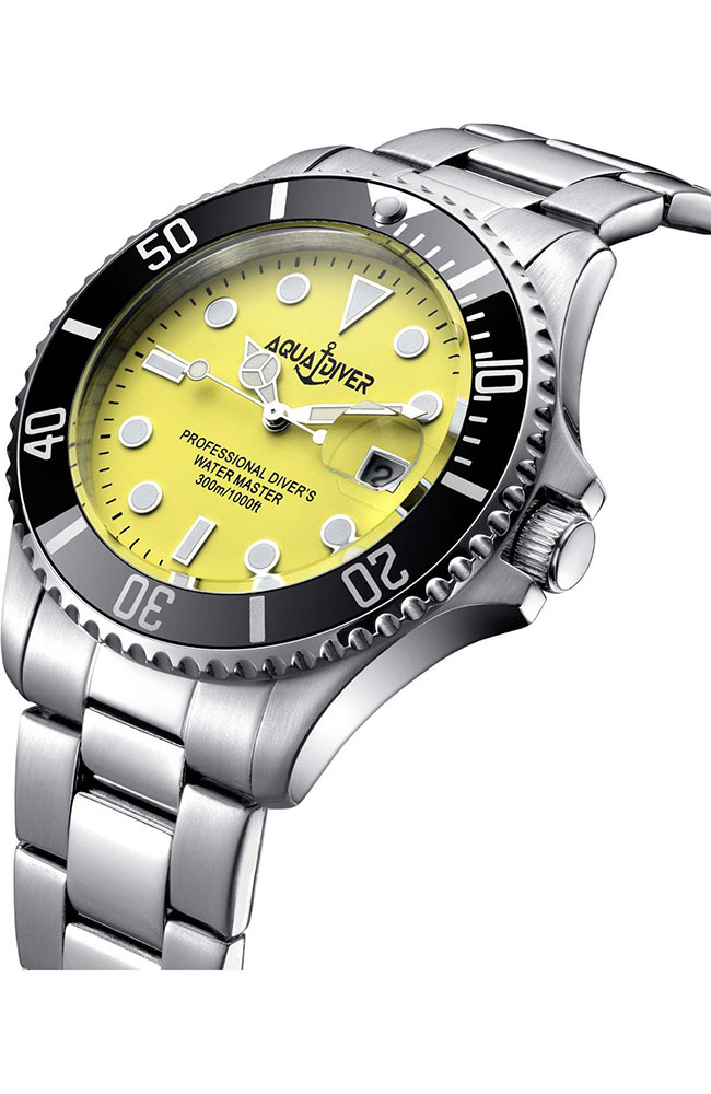 Ανδρικό ρολόι Aquadiver από ανοξείδωτο ατσάλι με κίτρινο καντράν και μπρασελέ.