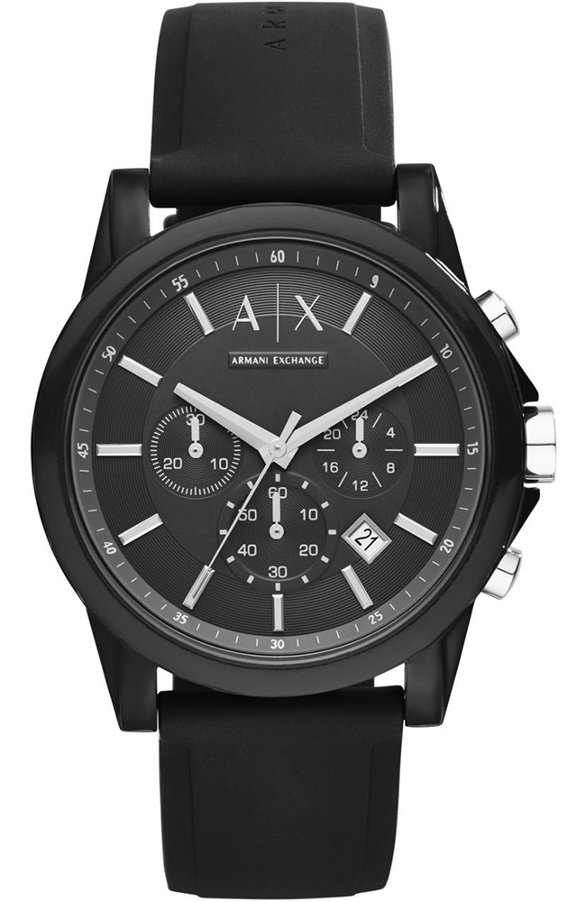 Ανδρικό ρολόι Armani Exchange με μαύρο καντράν και καουτσούκ λουράκι.