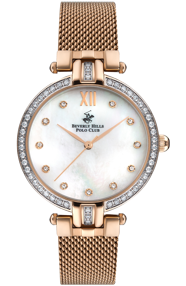 Γυναικείο Ρολόι Beverly Hills Polo Club με λευκό καντράν, πέτρες ζιργκόν και μπρασελέ.